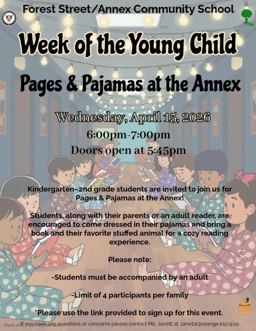 Forest Kindergarten–2nd graders are invited to join us for Pages & Pajamas at the Annex!Students, along with an adult reader, are encouraged to come dressed in their pajamas, bring a book and t...